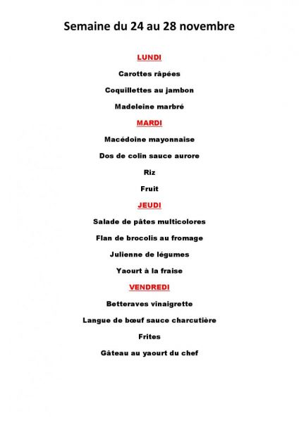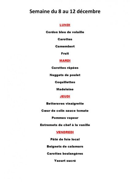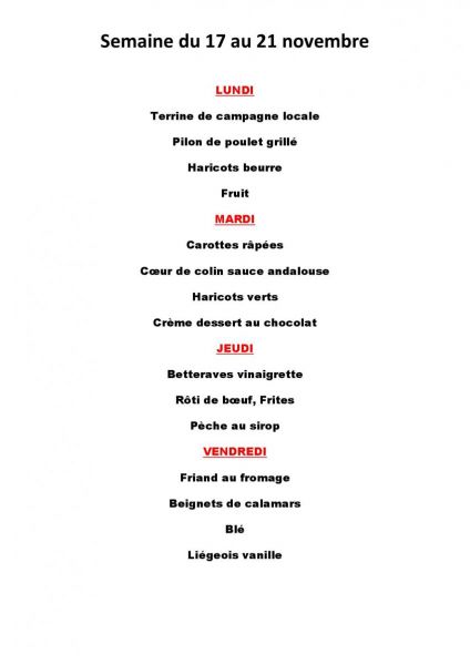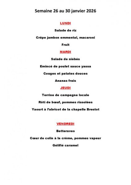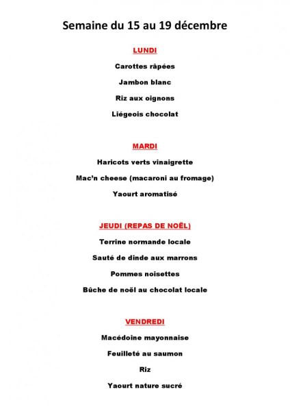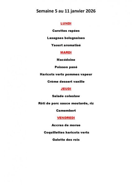 Cette année, pour répondre à de nombreuses demandes, les repas seront payés à mois échu. Vous recevrez une facture provenant du Trésor Public, que vous pourrez acquitter soit dans un bureau de tabac, soit en ligne par CB.